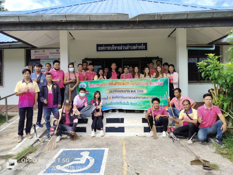 กิจกรรมทำความสะอาดและคัดแยกขยะตามโครงการรณรงค์การคัดแยกขยะเพื่อลดปริมาณขยะปัญหาสิ่งแวดล้อม ประจำปีงบประมาณ.พ.ศ.2566