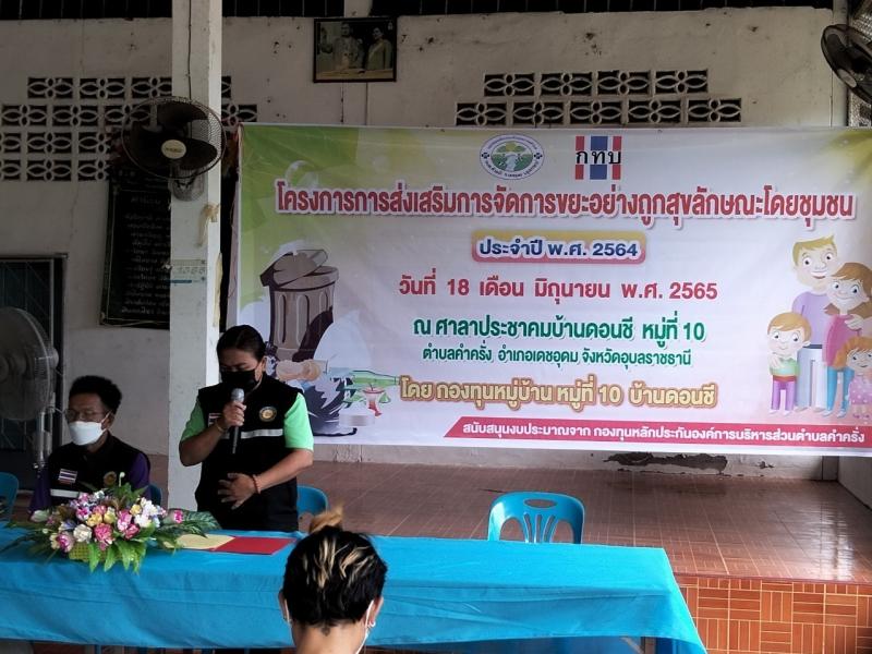 : องค์การบริหารส่วนตำบลคำครั่ง ได้ดำเนินการจัดโครงการส่งเสริมการจัดการขยะอย่างถูกสุขลักษณะโดยชุมชน ประจำปีงบประมาณ 2564 วันที่ 18 มิถุนายน 2565 ณ ศาลาประชาคมหมูที่ 10