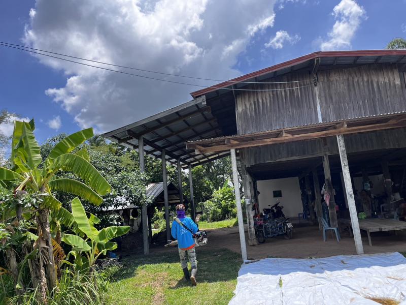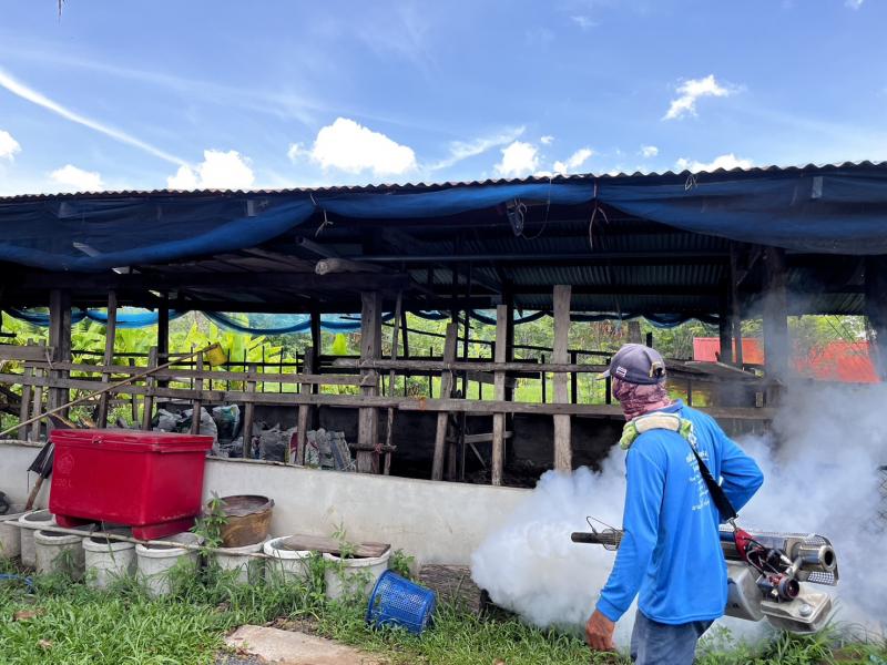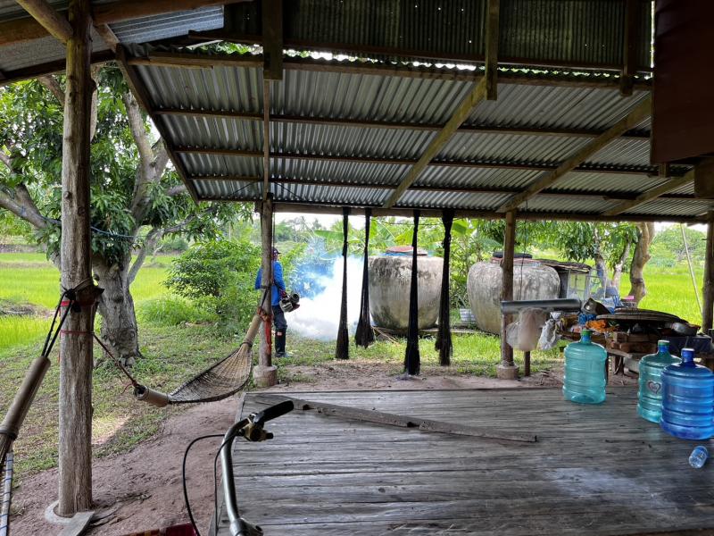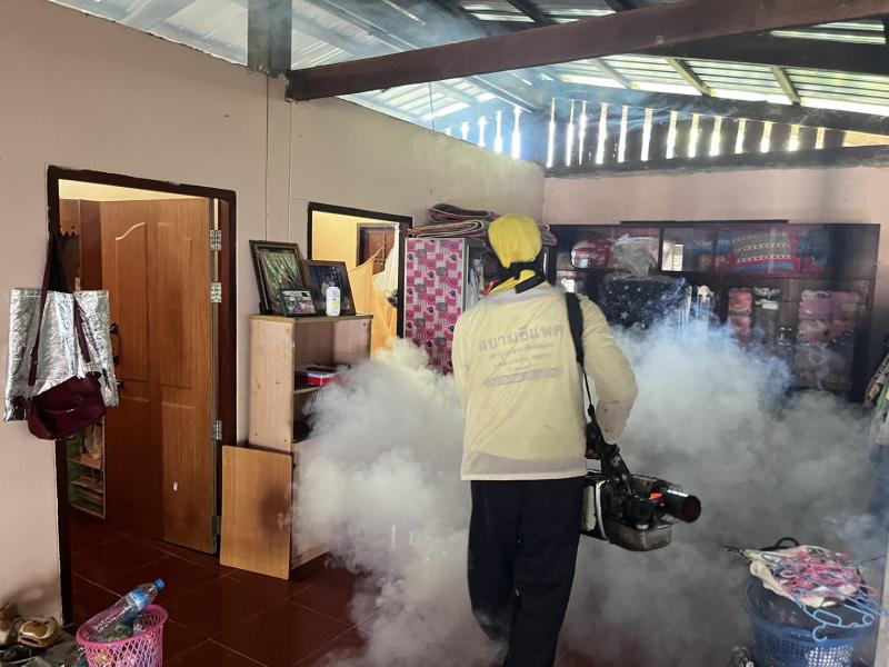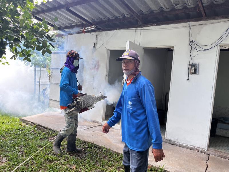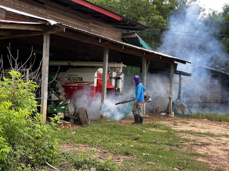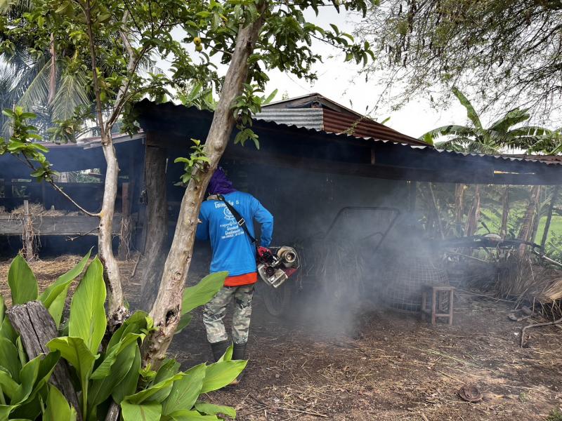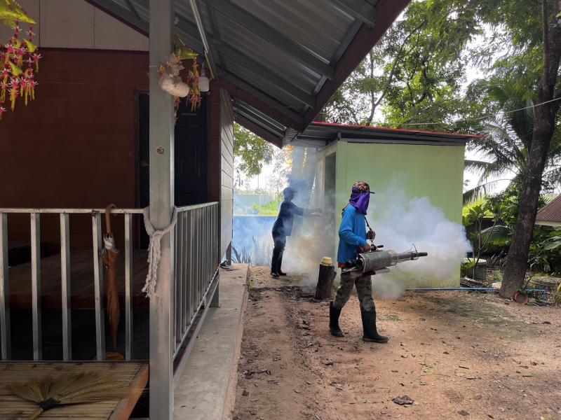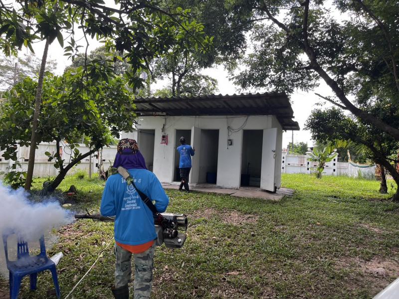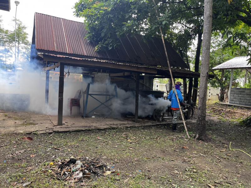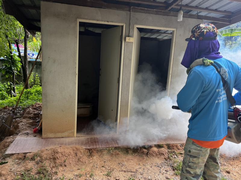 พ่นหมอกควันกำจัดยุงลายตามบ้านเรือนของหมู่ 4 โรงเรียนบ้านนานวล และทำความสะอาดตามหมู่บ้าน