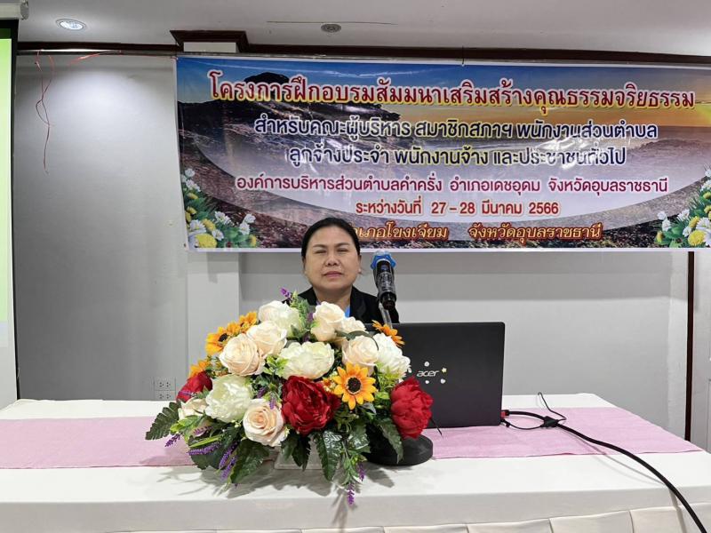 โครงการฝึกอบรมสัมมนาเสริมสร้างคุณธรรมจริยธรรม สำหรับคณะผู้บริหาร สมาชิกสภาฯ พนักงานส่วนตำบล พนักงานจ้างและประชาชนทั่วไป ประจำปีงบประมาณ พ.ศ. 2566
