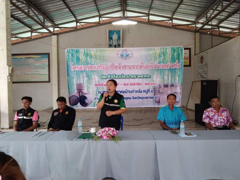 รายละเอียด : นางทัศนีย์ สีดา นายกองค์การบริหารส่วนตำบลคำครั่ง คณะผู้บริหาร หัวหน้าส่วนราชการ สมาชิกสภา กำนัน/ผู้ใหญ่บ้าน เข้าร่วมพิธีเปิดโครงการส่งเสริมอาชีพจักสานจากต้นคล้าตำบลคำครั่ง เพื่อเป็นแนวทางหนึ่งที่จะมีกิจกรรมเสริมที่เป็นประโยชน์ สนับสนุนให้มีการฝึกอบรมในการทำอาชีพเสริม เพื่อเป็นการใช้เวลาว่างให้เป็นประโยชน์ มีคุณค่า ลดค่าใช้จ่ายภายในครอบครัว เป็นประโยชน์ต่อผู้เข้าร่วมโครงการทุกท่านจะได้รับความรู้ และยังสามารถนำความรู้ที่ได้มาต่อยอดเป็นอาชีพเสริม เพื่อสร้างรายได้ให้กับชุมชนและคนในครอบครัว โดยดำเนินการอบรมในวันที่ ๑๙ – ๒๑ เมษายน พ.ศ. ๒๕๖๖ ณ ศาลาประชาคมบ้านคำครั่ง หมู่ ๑ ตำบลคำครั่ง อำเภอเดชอุดม จังหวัดอุบลราชธานี