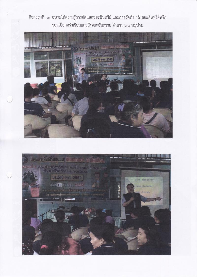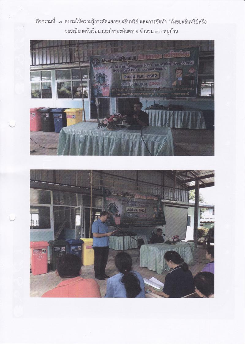 : โครงการส่งเสริมชุมชนคัดแยกขยะลดโลกร้อน ปีงบประมาณ 2562 เพื่อให้ความรู้ในการคัดแยกขยะและสร้างจิตสำนึกให้กับประชาชนในการคัดแยกขยะ
