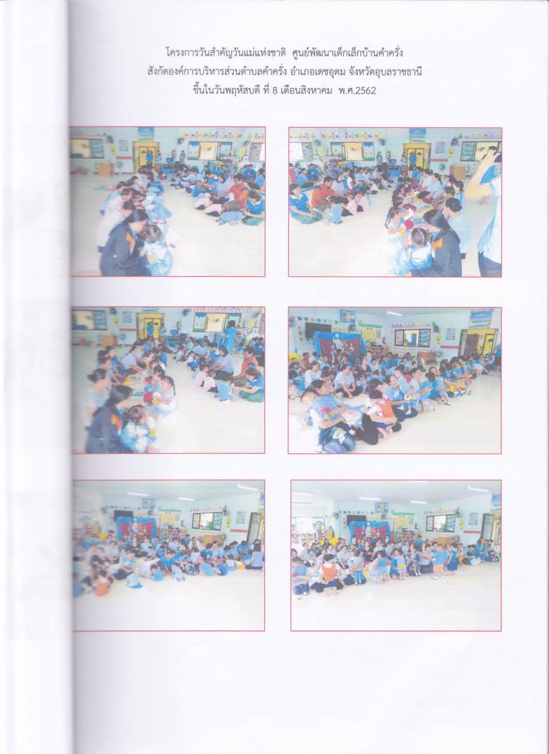 โดยดำเนินการในวันที่ ๘ สิงหาคม ๒๕๖๒ เพื่อพัฒนาผู้เรียนรู้ให้ได้ระลึกถึงพระคุณของแม่ ได้แสดงถึงความกตัญญูกตเวที ปลูกฝังให้นักเรียนกับผู้ปกครองและศูนย์พัฒนาเด็กเล็กร้างความสัมพันธ์ที่ดี