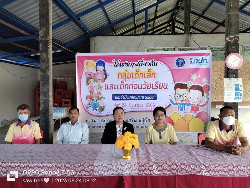 โครงการเกี่ยวกับกลุ่มเด็กเล็ก และเด็กก่อนวัยเรียน ณ ศาลาประชาคมบ้านโนนสว่าง หมู่ 3