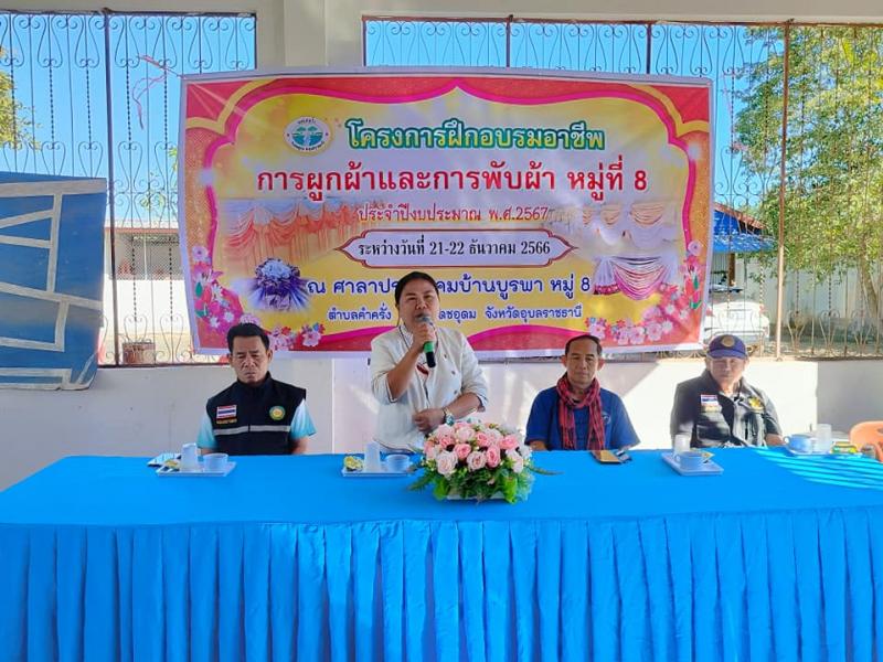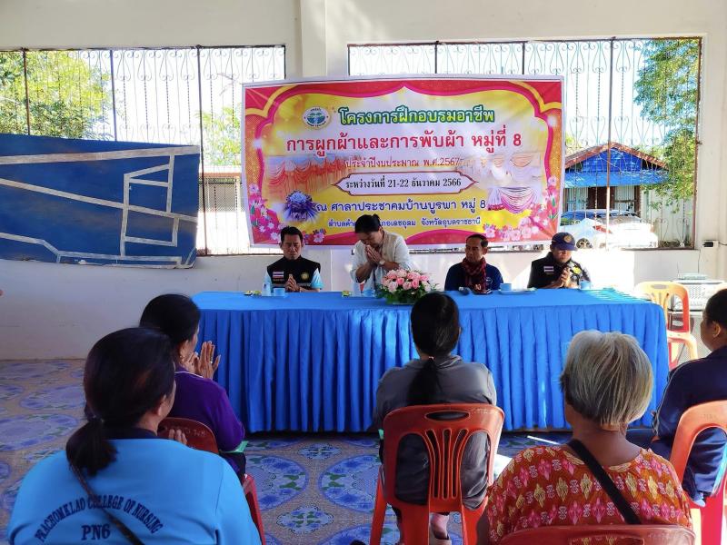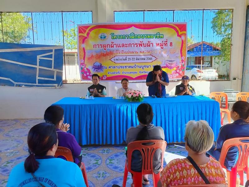 โครงการฝึกอบรมอาชีพการผูกผ้าและพับผ้า ณ ศาลาประชาคมบ้านบูรพา หมู่ 8