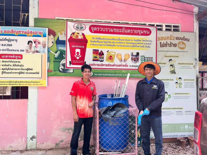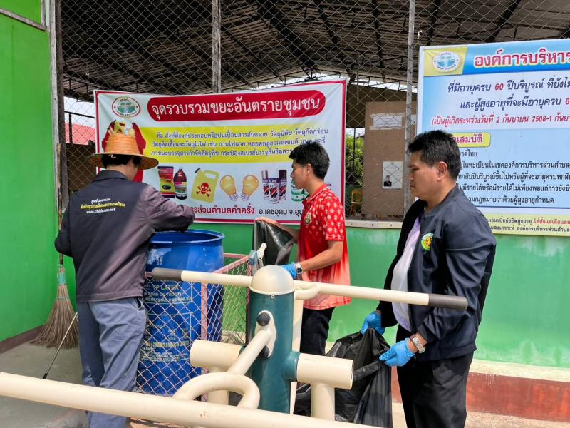 นางทัศนีย์ สีดา นายกองค์การบริหารส่วนตำบลคำครั่ง มอบหมายให้งานสาธารณสุขได้ดำเนินการเก็บขยะอันตราย ทั้ง10หมู่บ้าน ภายใต้โครงการคัดแยกขยะเพื่อลดปริมาณขยะประจำปีงบประมาณ 2568