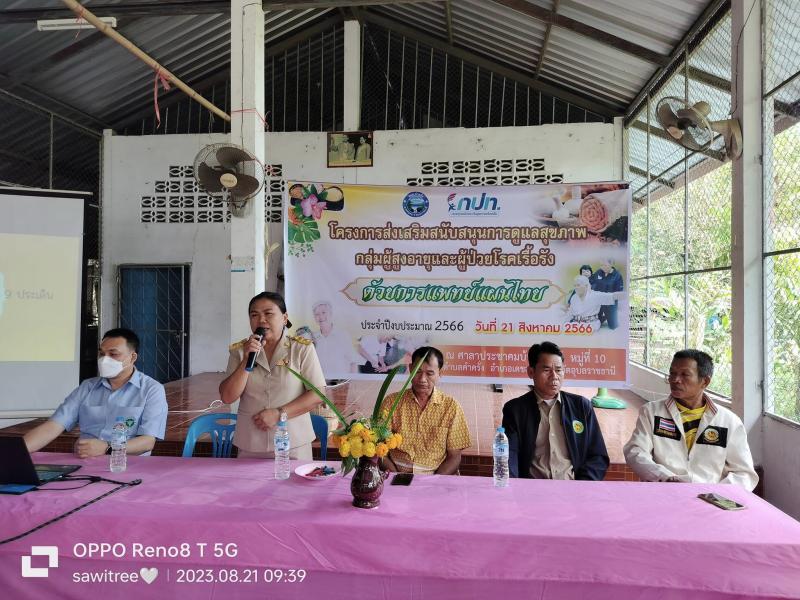 โครงการส่งเสริมสนับสนุนการดูแลสุขภาพ กลุ่มผู้สูงอายุและผู้ป่วยโรคเรื้อรัง ด้วยการแพทย์แผนไทย ณ ศาลาประชาคมบ้านดอนชี หมู่ 10