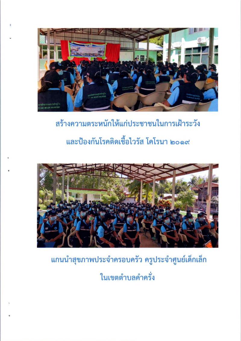 รายละเอียด : ด้วยกองทุนหลักประกันสุขภาพองค์การบริหารส่วนตำบลคำครั่ง ได้สนับสนุนงบประมาณโครงการเฝ้าระวังป้องกันและควบคุมโรคติดเชื้อไวรัสโคโรนา 2019 (COVID-19) เพื่อให้เครือข่ายสุขภาพ ภาคประชาชน มีความรู้ ความเข้าใจ ในการป้องกันโรคติดเชื้อไวรัสโคโรนา 2019 (COVID-19) และสามารถดูแลแนะนำประชาชนในชุมชนได้อย่างถูกต้องและมีประสิทธิภาพ โดยดำเนินการประชุมในวันที่ 1-2 ธันวาคม 2563 ณ ห้องประชุมโรงพยาบาลส่งเสริมสุขภาพตำบลคำครั่ง