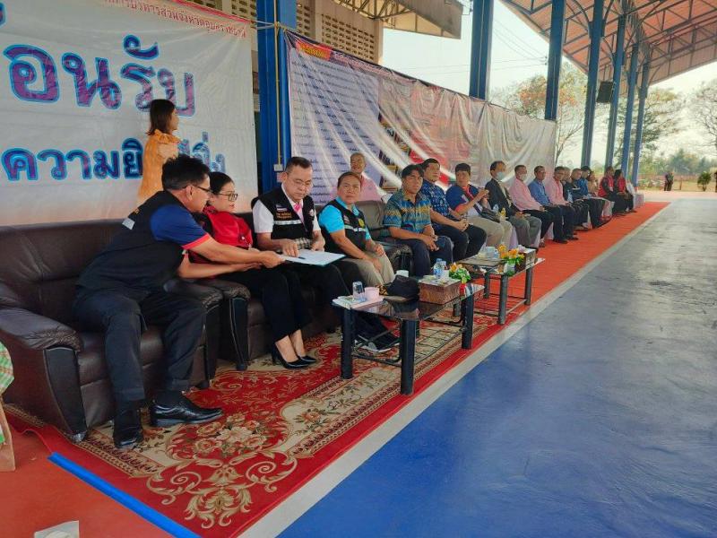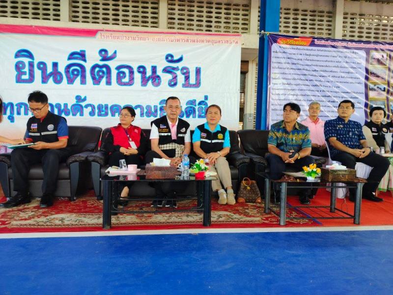 นางทัศนีย์ สีดา นายกองค์การบริหารส่วนตำบลคำครั่ง ร่วมยินดีต้อนรับ ท่านนายกกานต์ กัลป์ตินันท์ นายกองค์การบริหารส่วนจังหวัดอุบลราชธานี ณ โรงเรียนบัวงามวิทยา