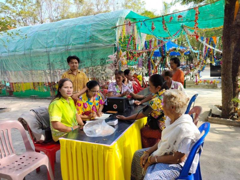 นางทัศนีย์ สีดา นายกองค์การบริหารส่วนตำบลคำครั่ง คณะผู้บริหาร หัวหน้าส่วนราชการ ข้าราชการ พนักงาน เข้าร่วมพิธีเปิดโครงการส่งเสริมสุขภาพผู้สูงอายุตำบลคำครั่ง ประจำปีงบประมาณ 2568 และกิจกรรมรดน้ำผู้สูงอายุ ณ วัดบ้านคำครั่ง