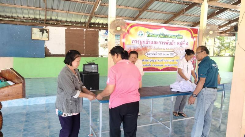 โครงการฝึกอบรมอาชีพการผูกผ้าและพับผ้า ณ ศาลาประชาคมบ้านนานวล หมู่ 4
