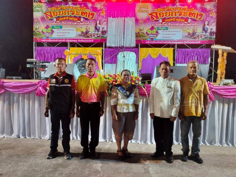 รายละเอียด : นางทัศนีย์ สีดา นายกองค์การบริหารส่วนตำบลคำครั่ง คณะผู้บริหาร หัวหน้าส่วนราชการ ข้าราชการ พนักงานส่วนตำบล พนักงานจ้าง เข้าร่วมกิจกรรมสืบสานประเพณีลอยกระทง ณ องค์การบริหารส่วนตำบลคำครั่ง