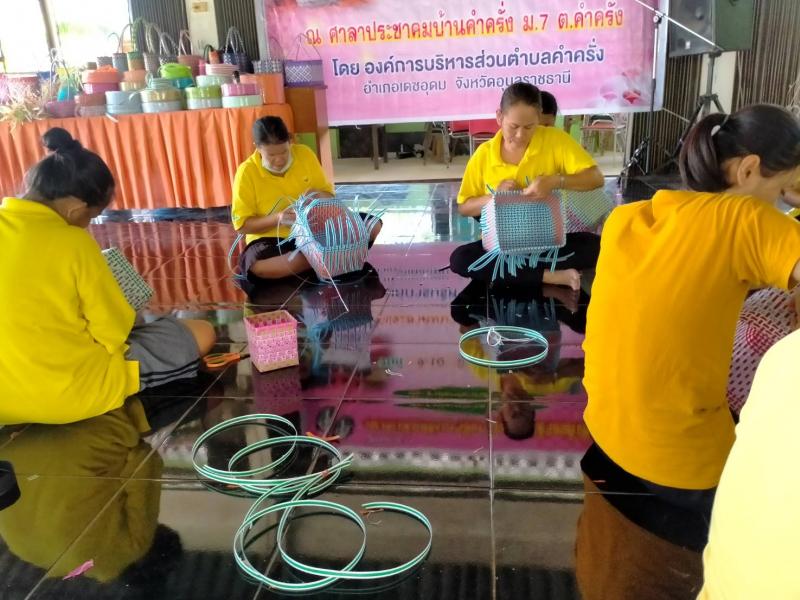 รายละเอียด : ด้วยองค์การบริหารส่วนตำบลคำครั่ง ได้กำหนดดำเนินโครงการอบรมส่งเสริมอาชีพ สานตะกร้าแฟนซี (ม.7) ประจำปีงบประมาณ พ.ศ. 2563 ขึ้นเพื่อการเสริมสร้างทักษะด้านอาชีพให้แก่ประชาชน ผู้ที่สนใจ เพื่อเป็นแนวทางหนึ่งที่จะมีกิจกรรมเสริมที่เป็นประโยชน์ สนับสนุนให้มีการฝึกอบรม ในการทำอาชีพเสริม เพื่อเป็นการใช้เวลาว่างให้เป็นประโยชน์ มีคุณค่า สร้างความรักความสามัคคี ลดค่าใช้จ่ายภายในครอบครัว เป็นประโยชน์ต่อผู้เข้าร่วมโครงการทุกท่านจะได้รับความรู้ ส่งเสริมทักษะ และประสบการณ์ ซึ่งจะส่งผลทั้งในด้าน การพัฒนาคุณภาพชีวิตและความเป็นอยู่ให้ดีขึ้น และยังสามารถ นำความรู้ที่ได้มาต่อยอดเป็นอาชีพเสริม เพื่อสร้างรายได้ให้กับชุมชนและคนในครอบครัว โดยดำเนินการอบรมในวันที่ ๙ – ๑๐ มิถุนายน พ.ศ. ๒๕๖๓ ณ ศาลาประชาคมบ้านคำครั่ง หมู่ ๗ ตำบลคำครั่ง อำเภอเดชอุดม จังหวัดอุบลราชธานี