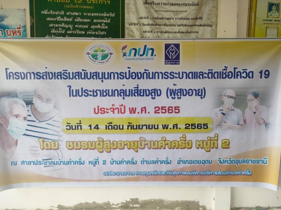 โครงการส่งเสริมสนับสนุนการป้องกันการระบาดและติดเชื้อโควิด 19 ในประชาชนกลุ่มเสี่ยงสูง (ผู้สูงอายุ) ประจำปี พ.ศ.2565 [14 กันยายน 2565]