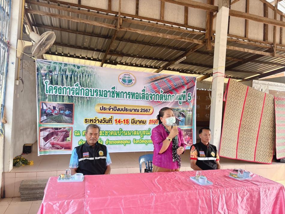 โครงการฝึกอบรมอาชีพการทอเสื่อจากต้นกก หมู่ที่ 5 ประจำปีงบประมาณ 2567 [15 มีนาคม 2568]