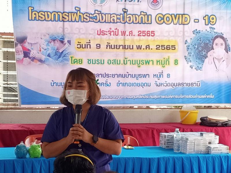 : นายเสถียร ชูคำ รองนายกองค์การบริหารส่วนตำบลคำครั่ง เข้าร่วมพิธีเปิดโครงการเฝ้าระวังละป้องกันโควิด COVID – 19 ประจำปี พ.ศ.2565 โดยชมรม อสม.บ้านบูรพา หมู่ที่ 8