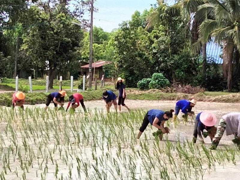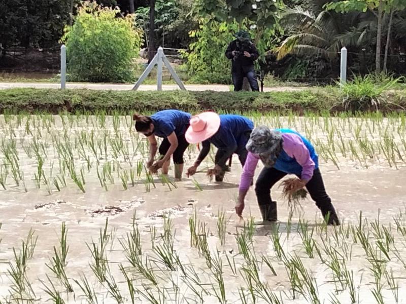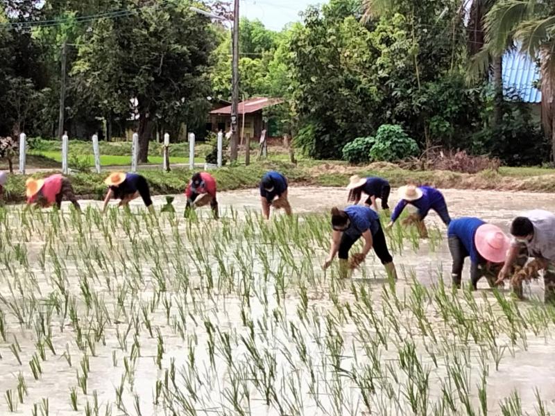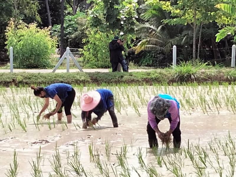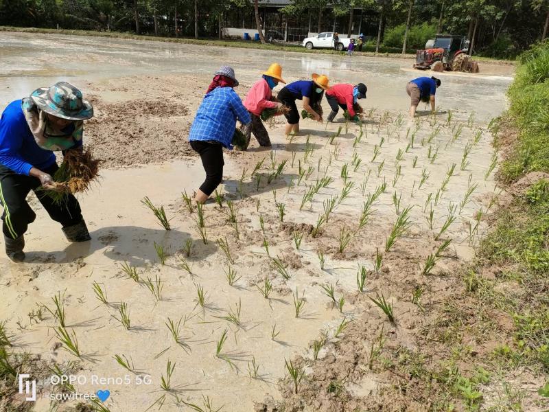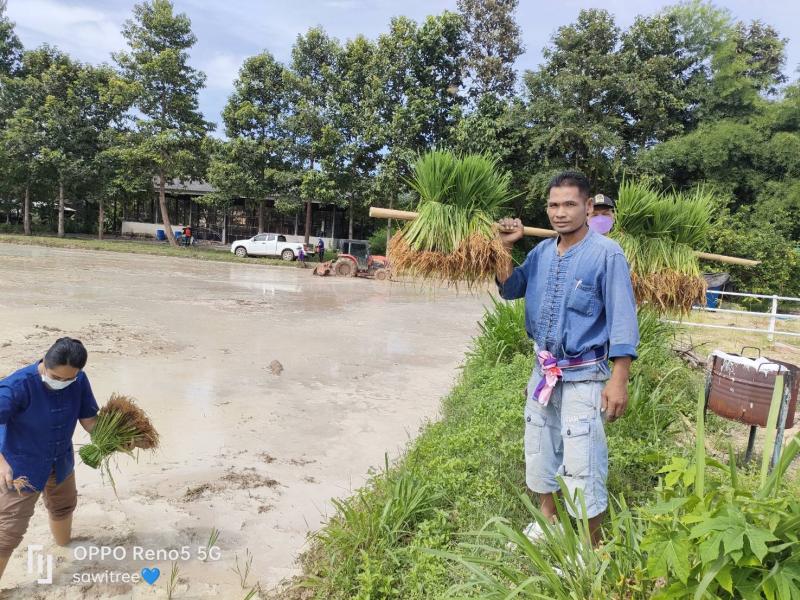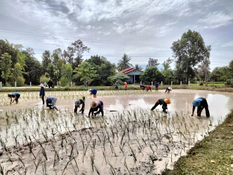 นางทัศนีย์ สีดา นายกองค์การบริหารส่วนตำบลคำครั่ง คณะผู้บริหาร สมาชิกสภาองค์การบริหารส่วนตำบลคำครั่ง งานเกษตร และพนักงานจ้างองค์การบริหารส่วนตำบลคำครั่ง เข้าร่วมกิจกรรมลงแขกดำนา ตามโครงการแปลงสาธิตเกษตรอินทรีย์วิถีพอเพียง ณ แปลงเกษตรสาธิตองค์การบริหารส่วนตำบลคำครั่ง
