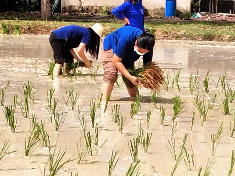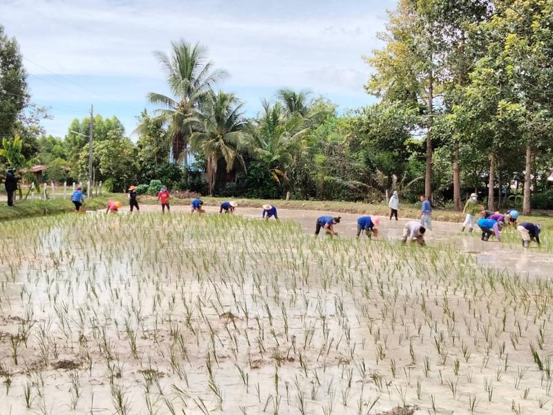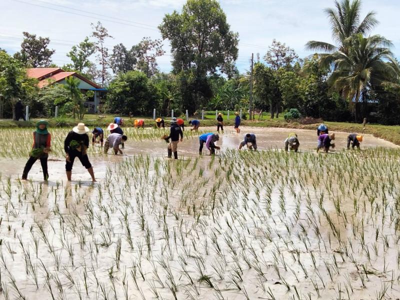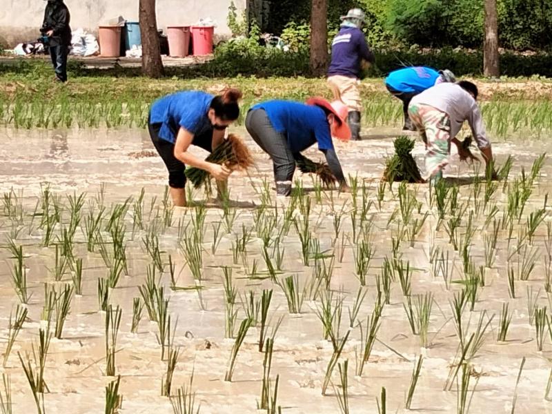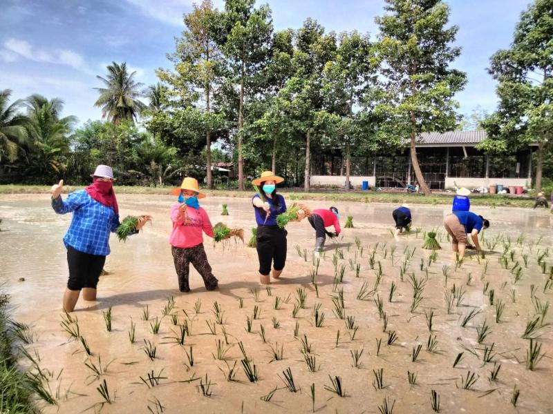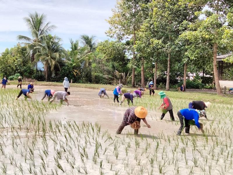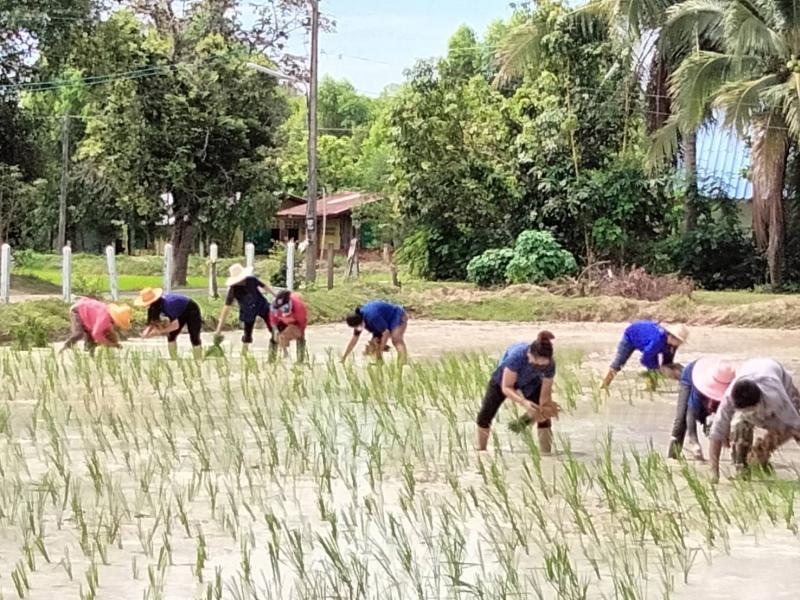 นางทัศนีย์ สีดา นายกองค์การบริหารส่วนตำบลคำครั่ง คณะผู้บริหาร สมาชิกสภาองค์การบริหารส่วนตำบลคำครั่ง งานเกษตร และพนักงานจ้างองค์การบริหารส่วนตำบลคำครั่ง เข้าร่วมกิจกรรมลงแขกดำนา ตามโครงการแปลงสาธิตเกษตรอินทรีย์วิถีพอเพียง ณ แปลงเกษตรสาธิตองค์การบริหารส่วนตำบลคำครั่ง