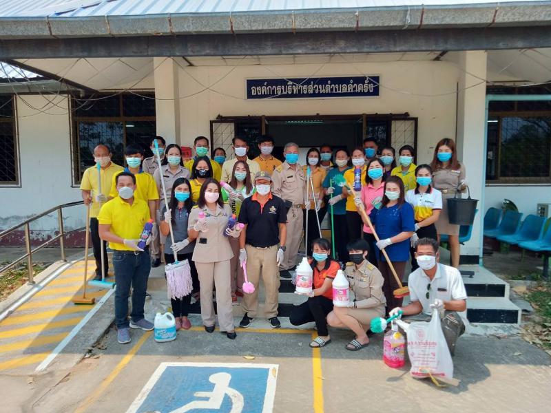 คณะผู้บริหารพร้อมพนักงานส่วนตำบล องค์การบริหารส่วนตำบลคำครั่ง ทำความสะอาดสำนักงาน เพื่อฆ่าเชื้อโรคป้องกันการแพร่ระบาดของไวรัสโคโรนา หรือโควิด-19